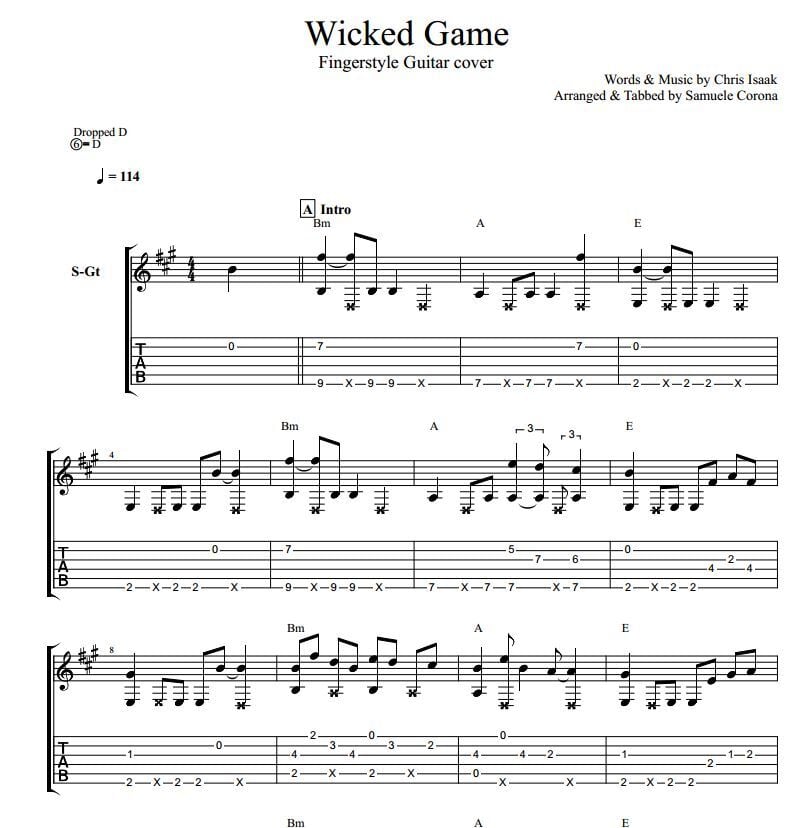 Wicked Game – Chris Isaak - Fingerstyle Guitar TAB