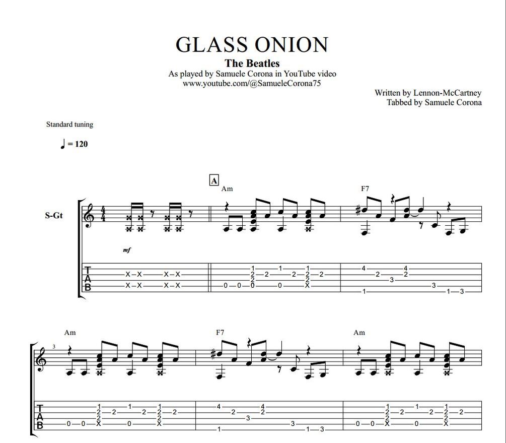 Glass Onion - The Beatles - Fingerstyle guitar TAB