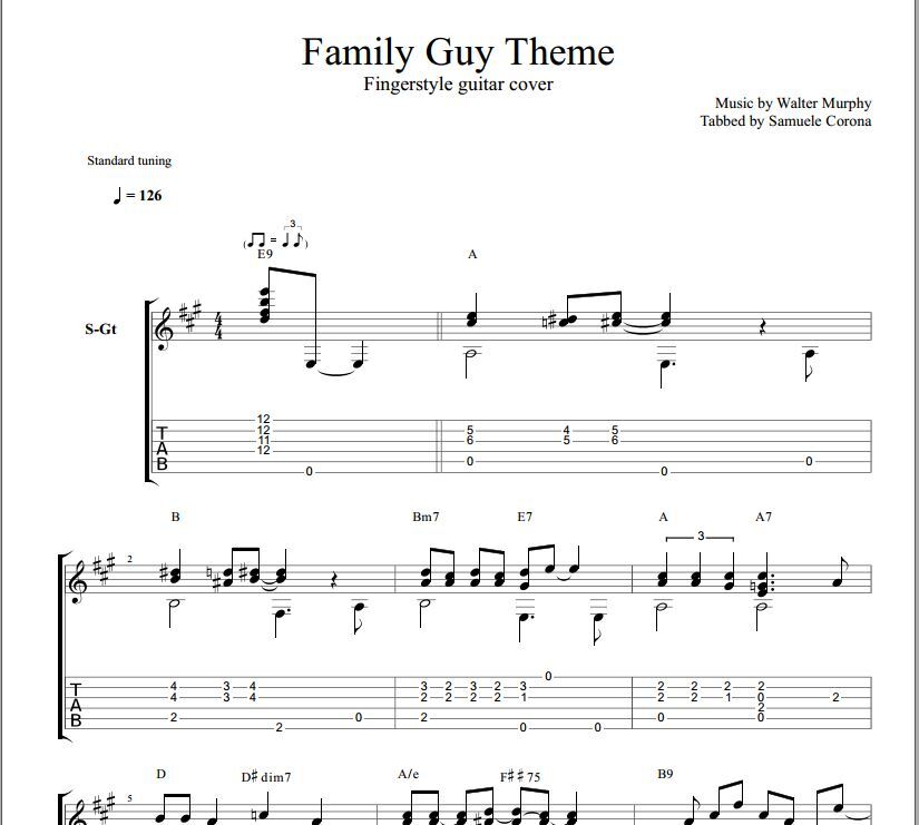 This is my arrangement of "Family Guy Theme" by Walter Murphy for fingerstyle guitar.